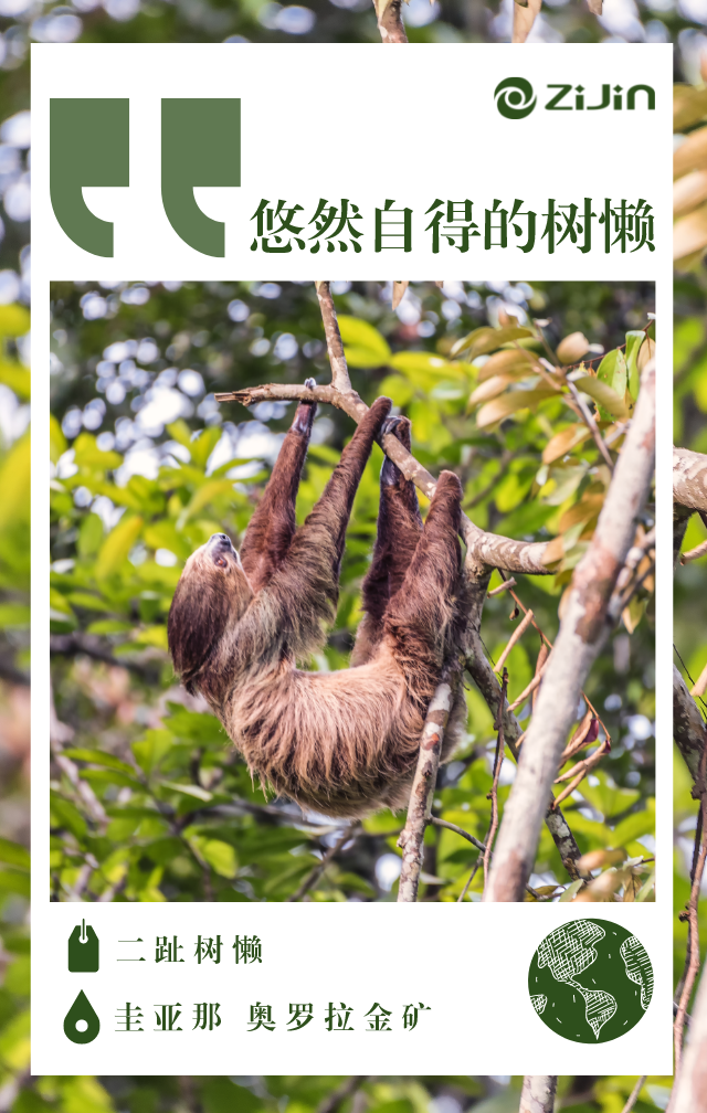 在奥罗拉金矿营地及矿区周边树林及沼泽地,经常会出现树懒的身影,这种高度树栖的动物,常年生活在树上,行动也极迟缓。