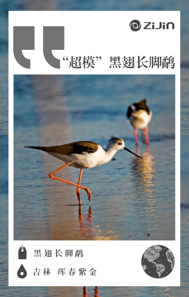 珲春紫金矿区下游,黑翅长脚鹬正在河边散步,这是一种珍惜候鸟,身材高挑,不大的个头,却长了一双30多厘米长的细腿,堪称鸟界“超模” 。