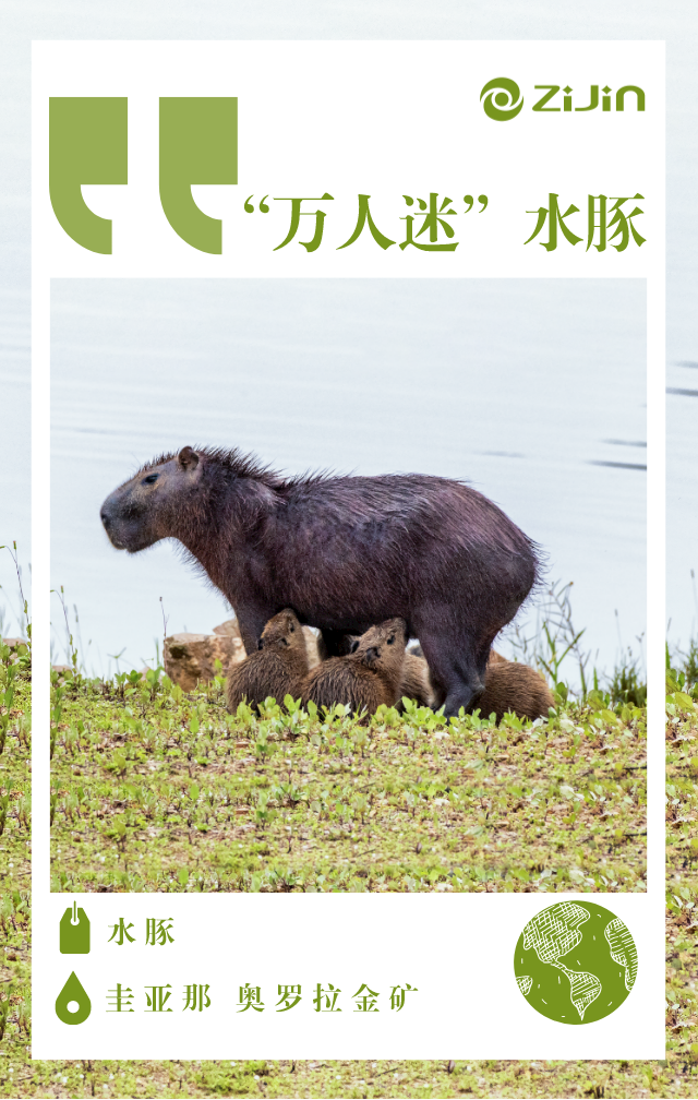 奥罗拉金矿尾矿库、矿山水池和矿区周边河流经常会有水豚的身影,“万人迷”水豚是性情温和的食草动物, 动物们都喜欢和水豚做朋友。