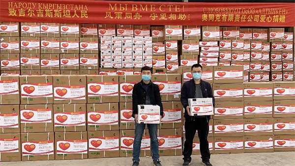 在中亚吉尔吉斯斯坦,奥同克公司向吉国政府捐赠了20万美元的防疫物资。