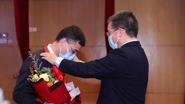 邹来昌总裁为一等功获得者赵俊康颁奖
