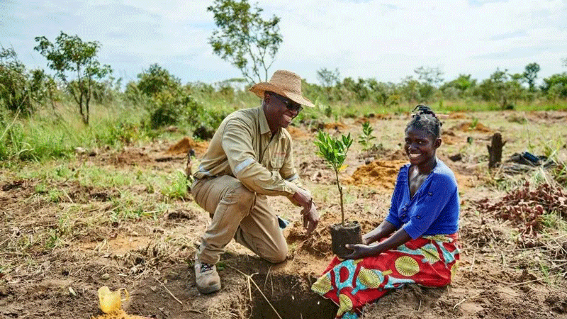 卡莫阿-卡库拉铜矿践行紫金“绿色生态发展理念”,在项目现场建立了大片苗圃,积极培育树种,种植了数千株来自Mlombo等林地的各种当地树种幼树,以建立更好的当地气候适应能力。2021年植树节,矿山在社区种植了3600株柑橘树苗,嫁接了200棵牛油果树;这些树木不仅为当地提供荫凉和营养丰富的水果,还通过储存二氧化碳减轻气候变化的影响,改善空气质量,促进生态平衡。
