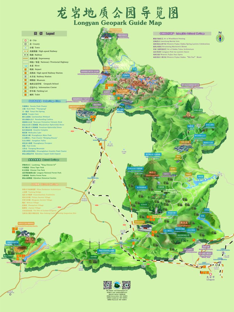龙岩世界地质公园范围2175平方公里,具有丰富多样的地质遗迹资源,以紫金山超大铜金矿、梅花山大型复式花岗岩体、冠豸山丹霞地貌、黄连盂石英砂岩地貌为主要特色,是一个集丰富地质景观、优良生态环境、深厚文化底蕴于一体的中大型综合性地质公园。